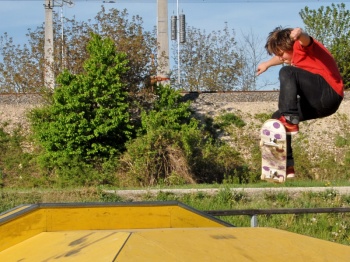 Die öffentlich zugängliche Skateranlage befindet sich in unmittelbarer Nähe des Sportzentrums. Quarterpipe, Slide - Rail, Bank, Funbox, Curb