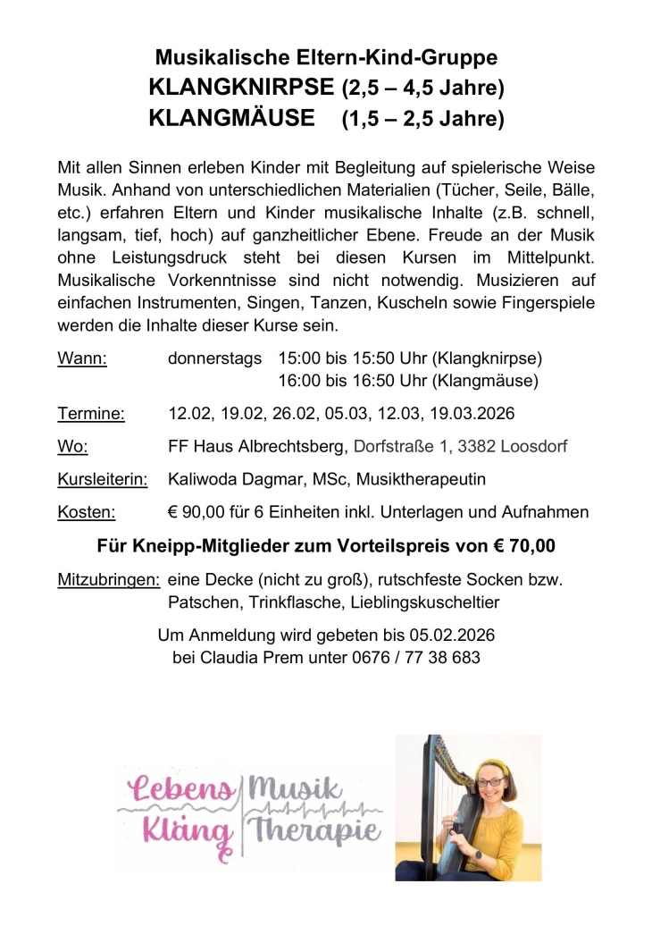 Wann: donnerstags 15:00 bis 15:50 Uhr (Klangknirpse)