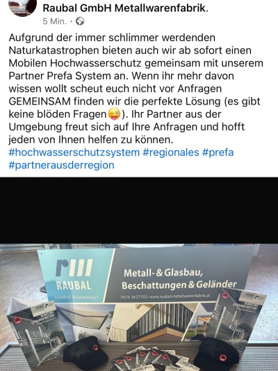 Raubal GesmbH, Metallwaren & Glasbau- u.Schiebetüren, Beschattungen (Pergola, Markisen), Geländer, Hochwasserschutz uvm.