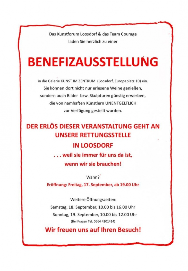Heute Abend, 19 Uhr, beginnt die Benefizvernissage des TeamCOURAGE Loosdorf und dem Kunstforum Loosdorf.